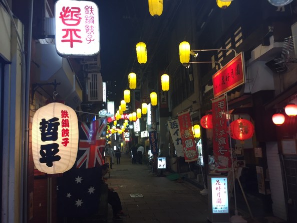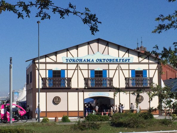 Weiter ging es an der schönen Hafenpromenade vorbei und alten Backsteingebäuden, die früher dem Umschlag von Waren dienten und heute, vollständig saniert, wieder Geschäfte beherbergen. Von weitem vernahmen wir aber etwas vertrautes, den Klang von Trompeten, Musik, Schunkelmusik… Tausende Kilometer von Deutschland entfernt konnten wir es recht schnell erkennen. Zwischen den Backsteinbauten, direkt am Hafen war eine kleine Zeltstadt aufgebaut und neben den deutschen Fahnen stand dort in großen Lettern, Oktoberfest Yokohama! Mensch, hätte ich doch nur meinen, vor ein paar Wochen auf dem echten Oktoberfest gekauften Hut, dabei gehabt. Ich wäre eine Hauptattraktion gewesen. 🙂 An einer kurzen Rast wollten wir uns jedoch nicht weiter aufhalten, einmal weil es noch recht früh für eine Maß gewesen wäre, andererseits aber auch umgerechnet rund 25€ (aktuell auf der Wiesn „nur“ 10,50€) gekostet hätte. Zugegeben, lustig wäre es zwischen all den Japanern gewesen, die sich Bier, Brezel, Sauerkraut und Würstchen angetan haben…
