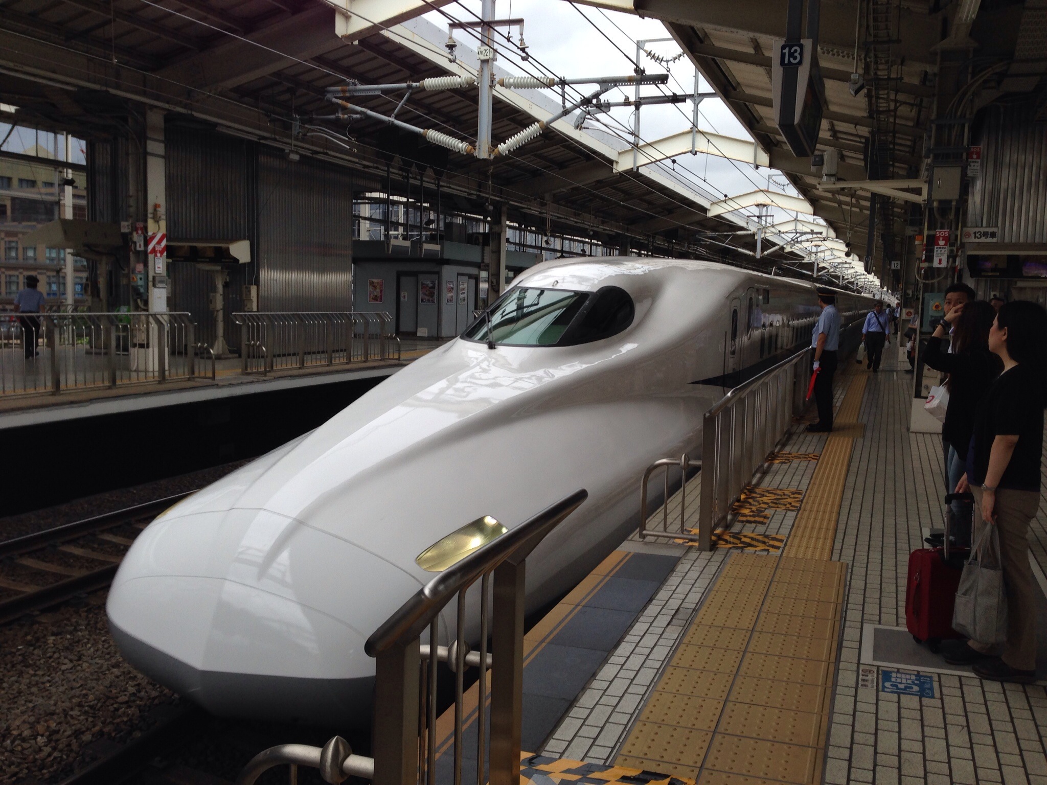 Heute Vormittag hieß es wieder Koffer packen, die Reise führte weiter von Kyōto in die Metropole Tokyo. Wie, wenn nicht mit dem Shinkansen könnte man die 500km in die Hauptstadt am schnellsten zurücklegen. Da wir dieses Jahr ohne den Japan-Rail-Pass unterwegs sind, entschieden wir uns heute für den Nozomi, der Kyoto in unschlagbaren 2:20 Stunden mit Tokyo verbindet! Von solch einer Verbindung träumt ein jeder Pendler in Deutschland. Die pünktliche Abfahrt und Ankunft inbegriffen, die Verspätung aller Shinkansen liegt im Durchschnitt bei unter 5 Minuten pro Tag! Ein kleiner Imbiss aus der Bento-Box durfte natürlich nicht fehlen. Übrigens, der Hochgeschwindigkeitsverkehr in Japan feiert in diesem Jahr sein 50. Jubiläum und gilt seither als sicherster Hochgeschwindigkeitszug.