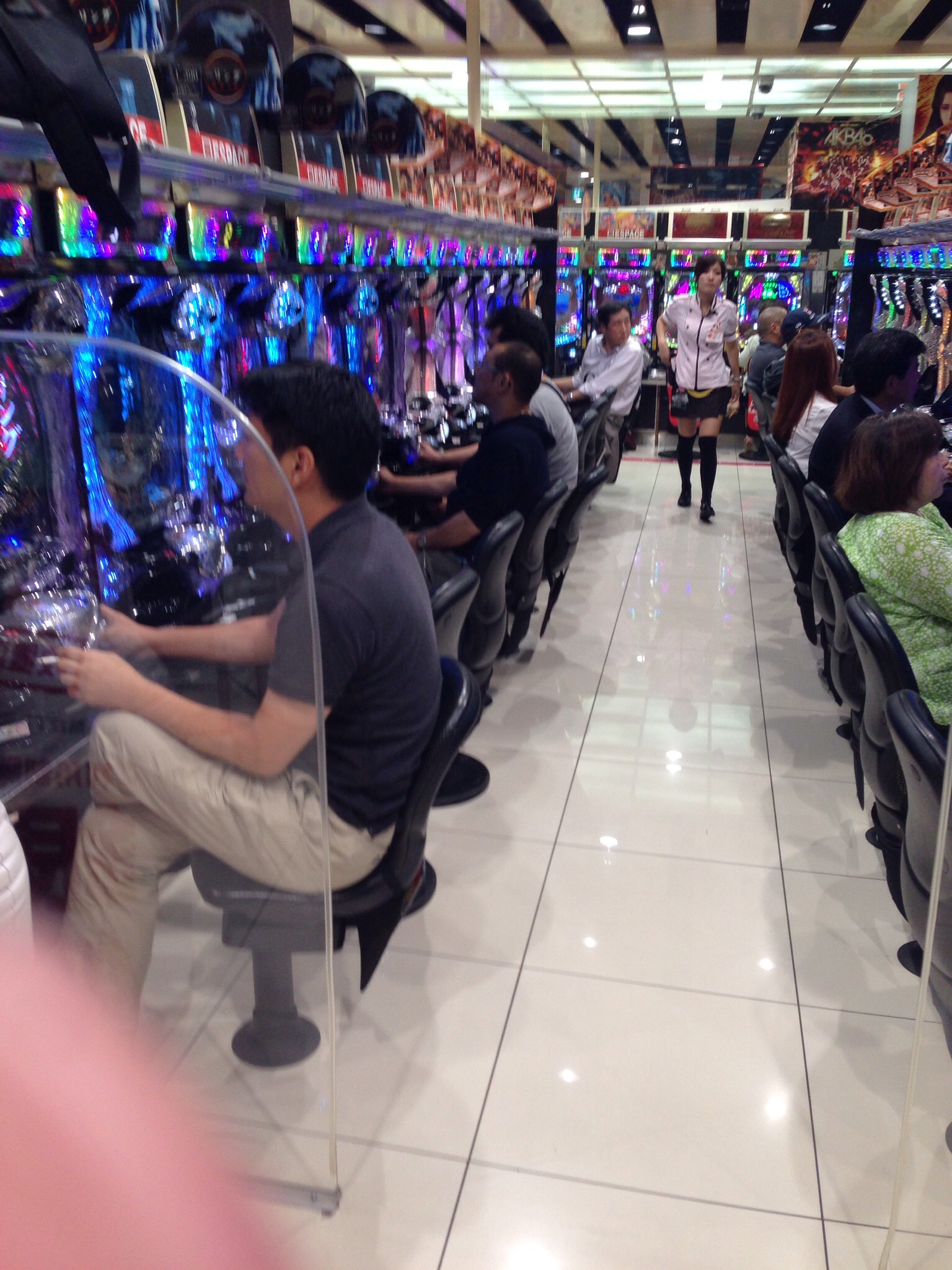 Den angebrochenen Nachmittag nutzen wir, um endlich einmal eine der unzähligen Spielhöllen von innen zu sehen! Bei aller Vorstellungskraft, sobald sich die Türen öffnen, scheint man in eine andere Welt abzutauchen. Die automatischen Türen öffnen sich, der Straßenlärm wird durch einen kurz vor der Schmerzgrenze stehenden Lärmpegel jäh übertönt. Das kreischendes Geräusch, in dem man Musik, Automatengepiepe, Sirenen, Geldgeklimper und vieles andere undefinierbares in Ansätzen wahrnehmen kann, begleitet einen bis man die Spielhalle durch den nächstgelegenen Ausgang wieder verlässt. Über mehrere Etage reihen sich die Spielautomaten aneinander und Generationen (!!) von Japanern füttern diese mit einer Münze nach der anderen. Sollte der Jackpot mal etwas länger auf sich warten lassen, besteht die Möglichkeit, sein Mobile-Device direkt am Automaten zu laden und sich auch mit dem notwendigsten wie bspw. Cup-Noodles einzudecken. Manch einer der Spieler hat einen mit einem Blinklicht versehenen Wagen mit hunderten (tausenden?) Münzen hinter sich stehen. Wieviele Cup-Noodles da wohl drauf gegangen sind? Nachdem wir dem Lärm trotzten entschlossen wir uns doch noch an einem Automaten unser Glück zu versuchen. Es kann jedoch unerwähnt bleiben, dass die 1.000¥ in kürzester Zeit in den Sand gesetzt wurden…