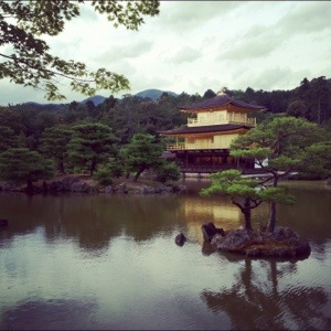 Vom alten Kaiserpalast aus, ging es weiter zum bekannten „Goldenen Pavillon“ dem „Kinkaku-ji“. Eine mit Blattgold überzogene Pagode passt sich hier gut in eine Seenlandschaft und in viel Grün ein.