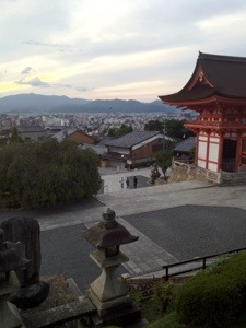 Da uns gestern die Zeit einen Strich durch die ursprünglichen Planungen machte, beeilten wir uns heute umso mehr ans andere Ende der Stadt zu gelangen. Vom „Kiyomizu-dera“-Tempel konnten wir heute den Sonnenuntergang über Kyoto bewundern.